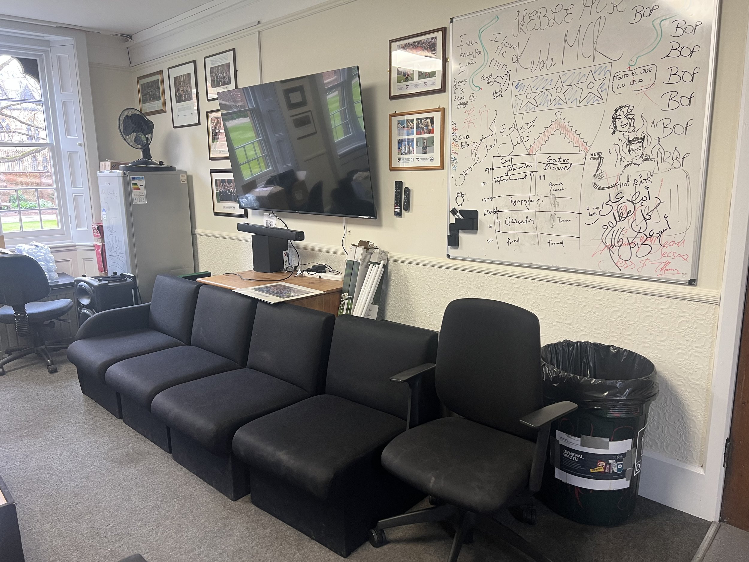 In Hilary Term 2025, I conducted an MCR-wide “Pulse” survey on our shared spaces which received more than 80 detailed contributions. This informed many decisions for the remainder of my presidency (notably with the catering team and the domestic bursary); however, an overwhelming majority shared their concern about the room. And so, we went to work.